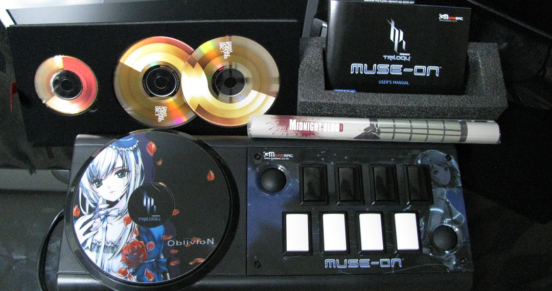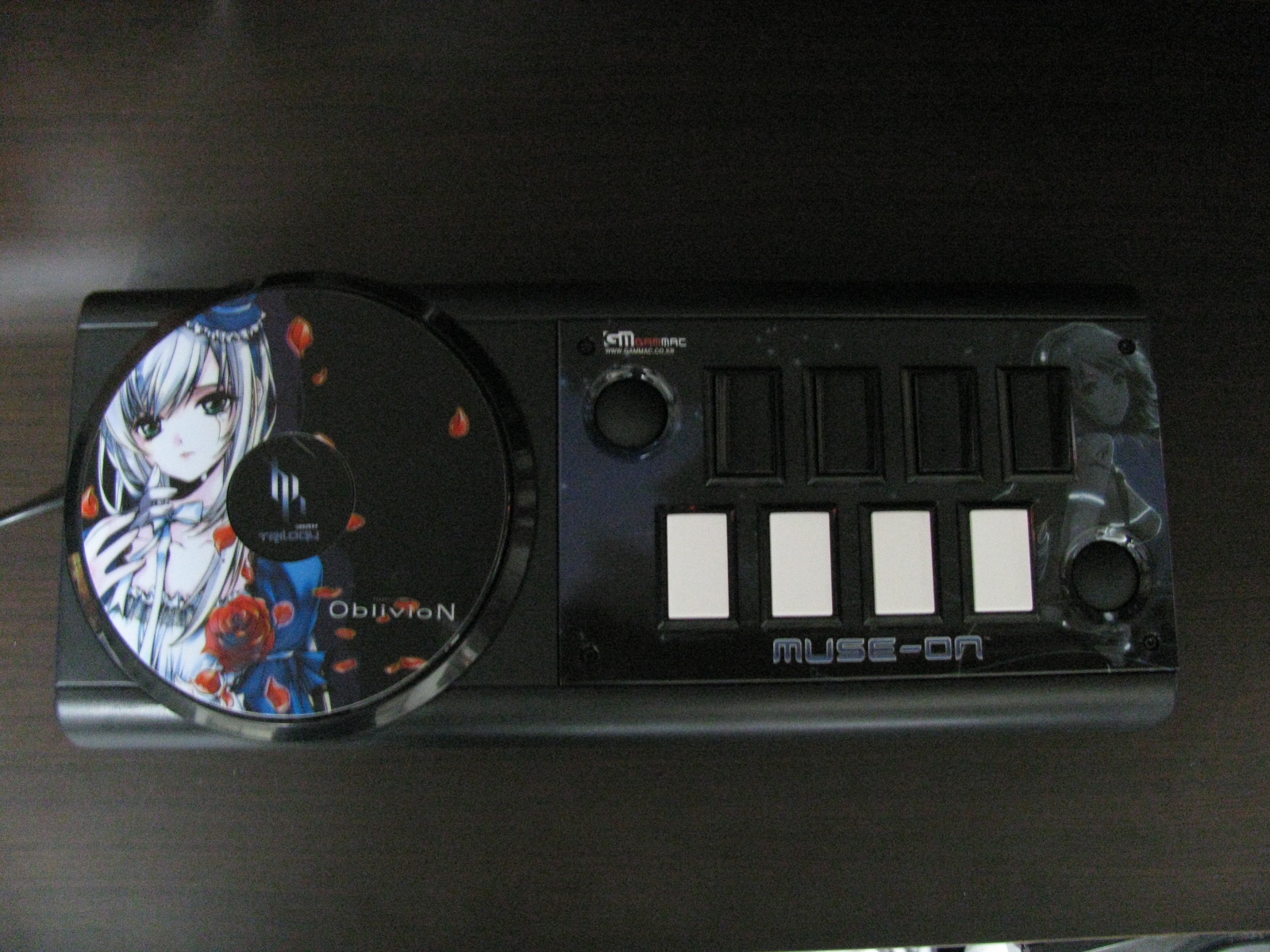 DJMAX Trilogy コントローラは上2つのコントローラと違い 8鍵まであり、左右の黒いコロコロが特徴的。